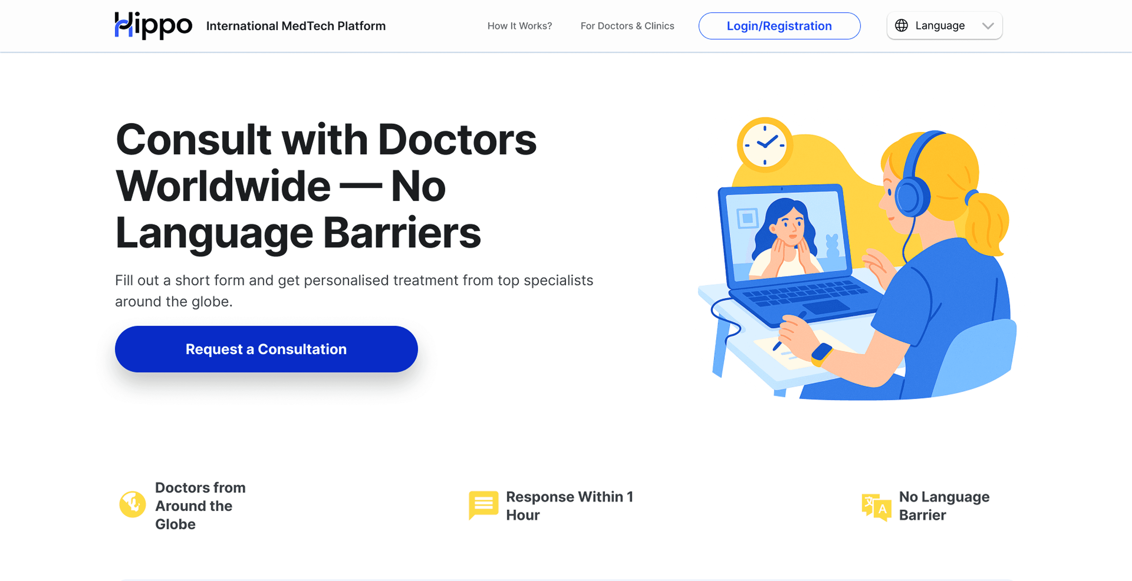 HIPPO is an international med-tech platform that allows patients to find doctors and clinics around the world that meet their requests, and also includes automatic translation of speech and documents during consultations.
