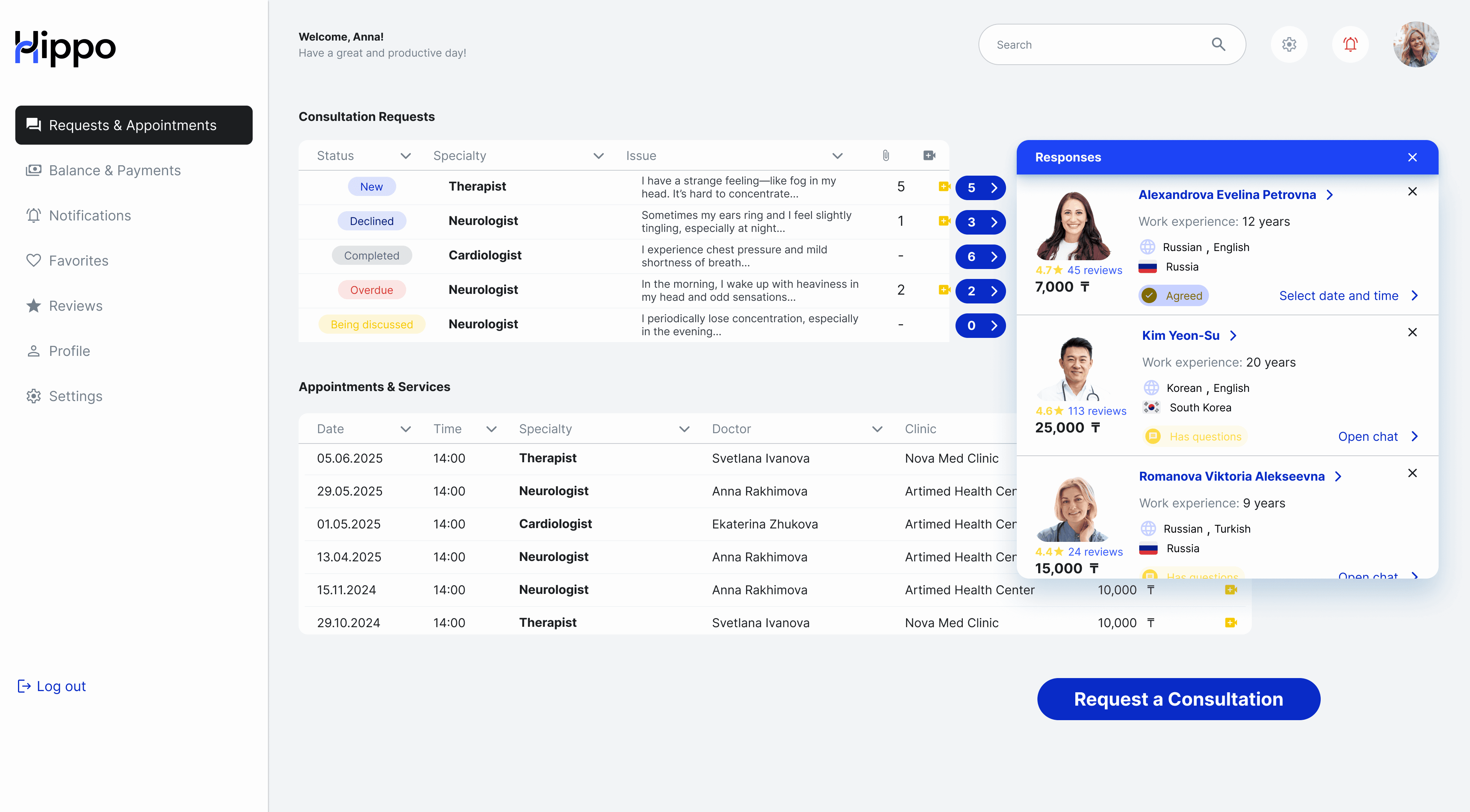 The patient cabinet has been redesigned into a dashboard, where for each request you can see the number of responses and view the doctors.