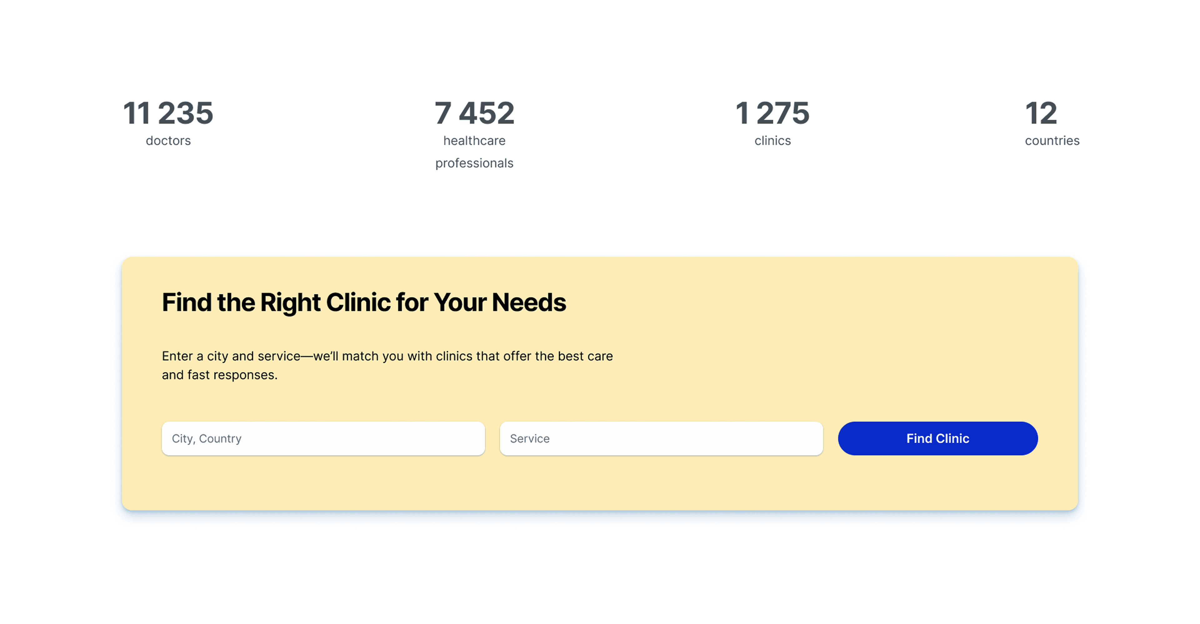 Allows you to find a clinic or medical service (excluding consultation).
