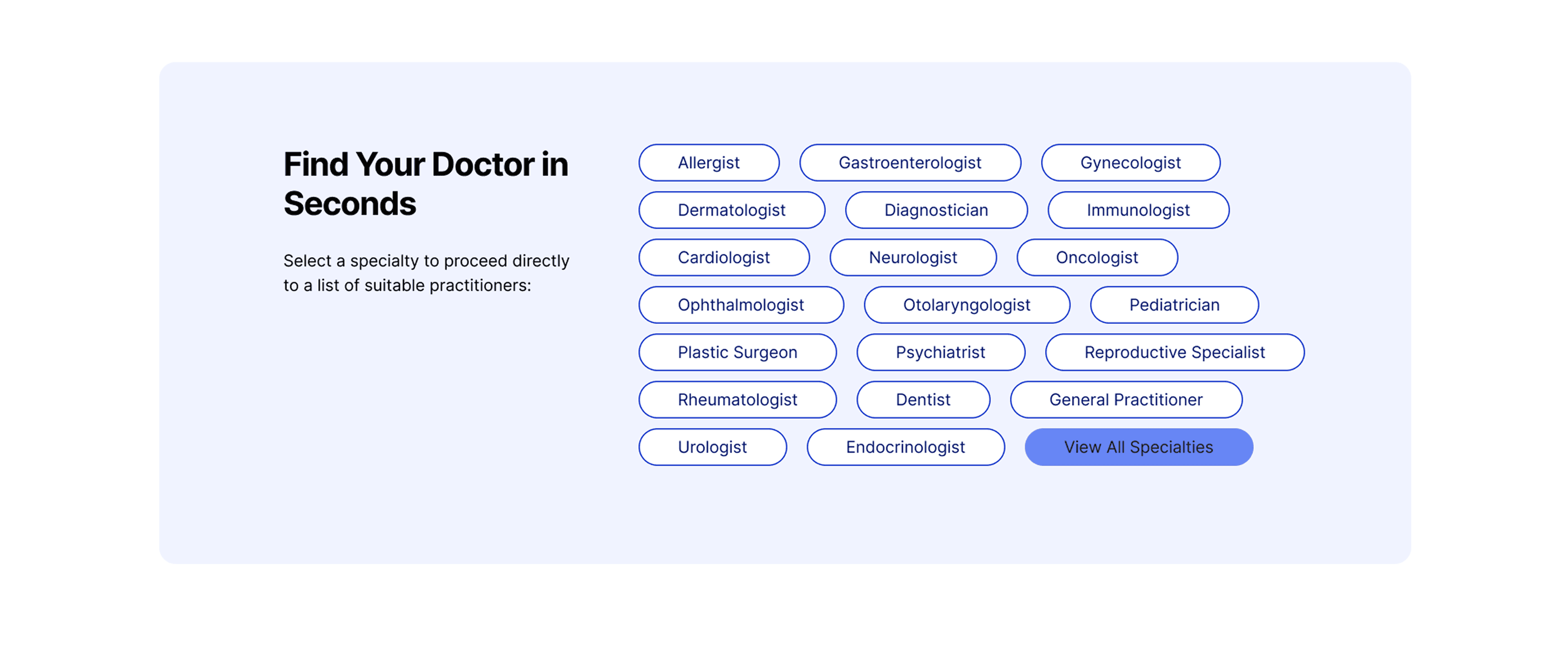 Allows you to find a doctor by specialty.