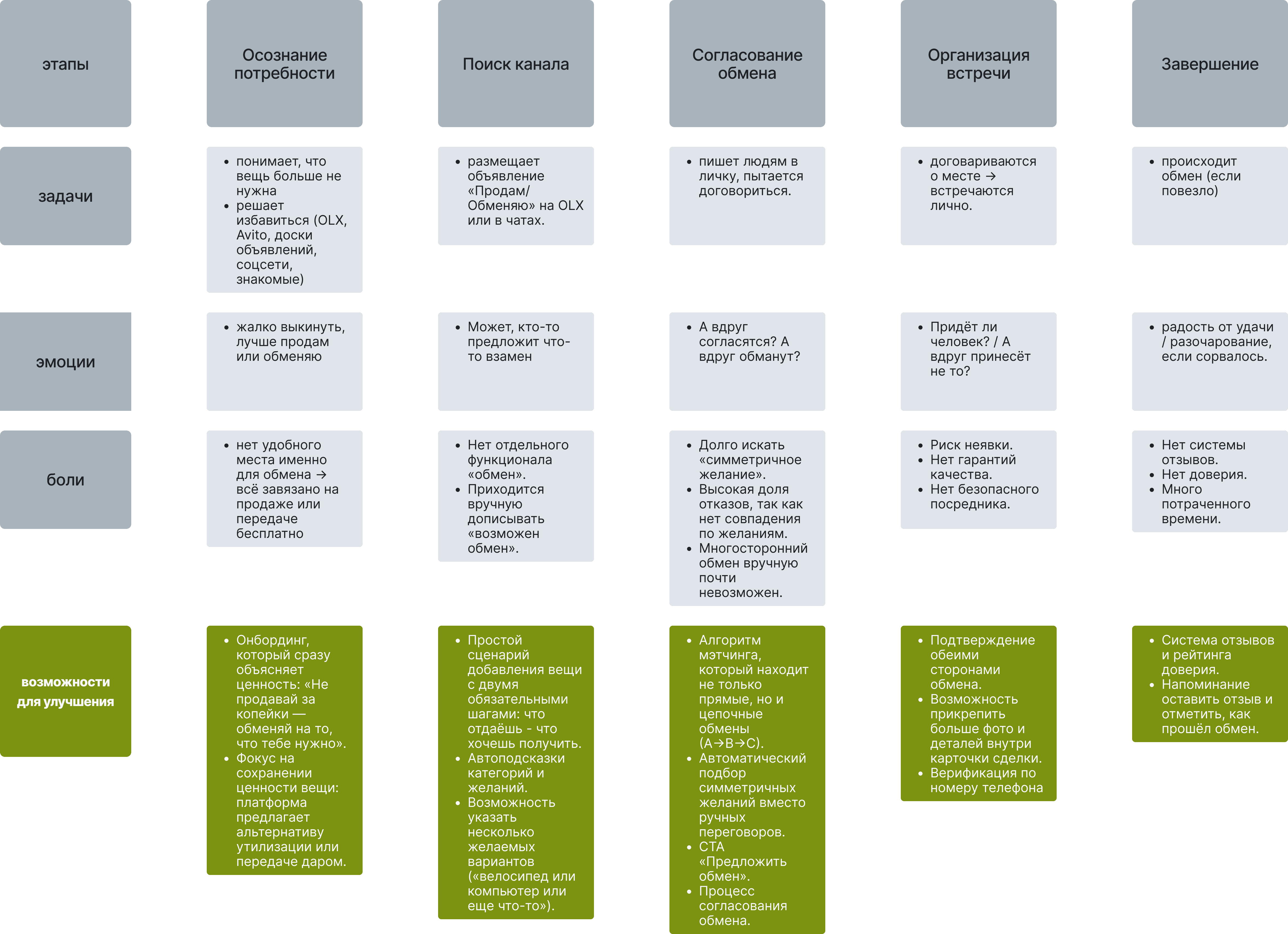В итоге я приняла решение сфокусироваться на бартере вещей с уникальной фичей: алгоритмом прямого и многостороннего мэтчинга.