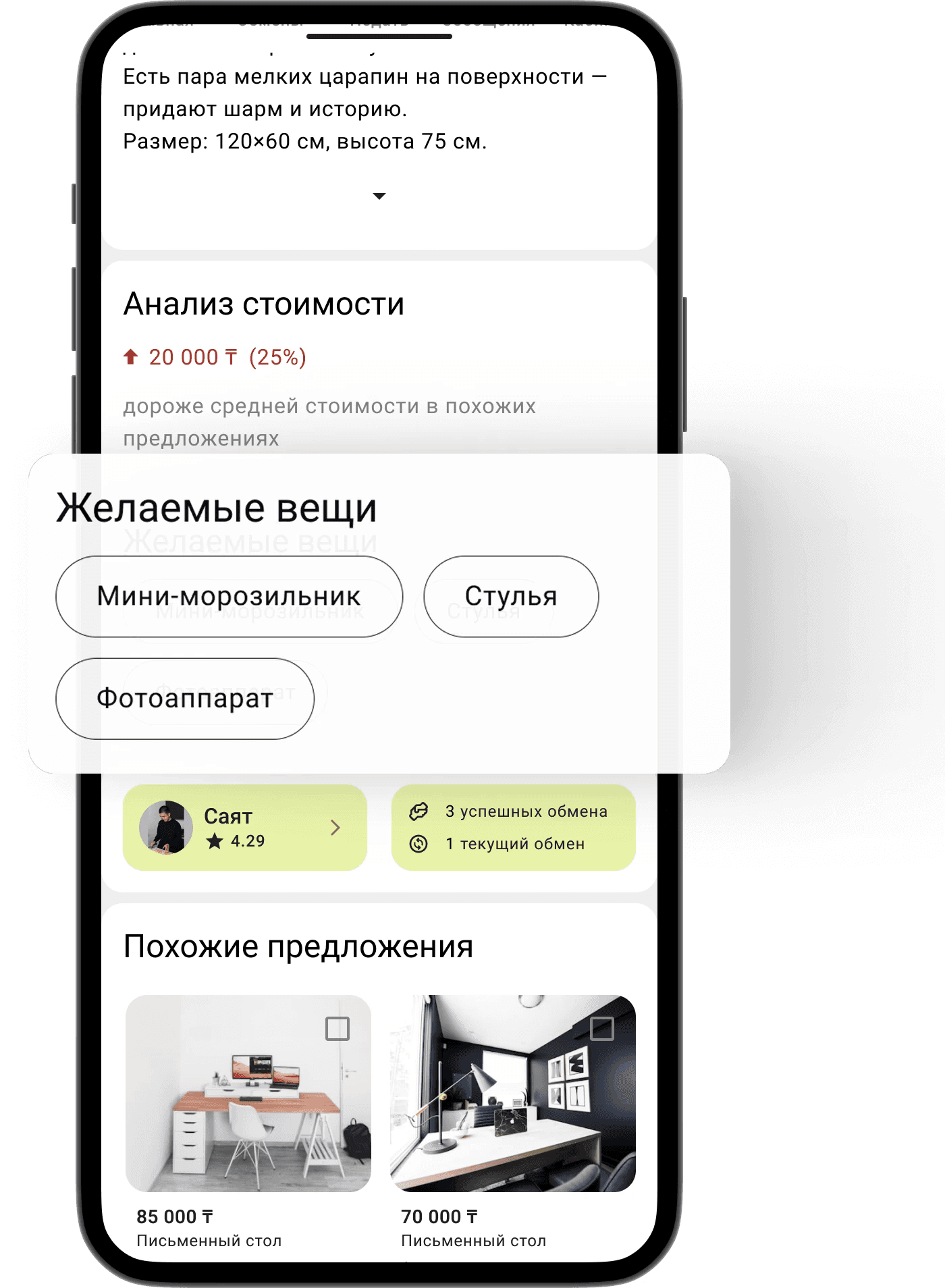 Основное отличие от классических досок объявлений — интеллектуальный мэтчинг, который помогает находить прямые и многосторонние бартерные цепочки.