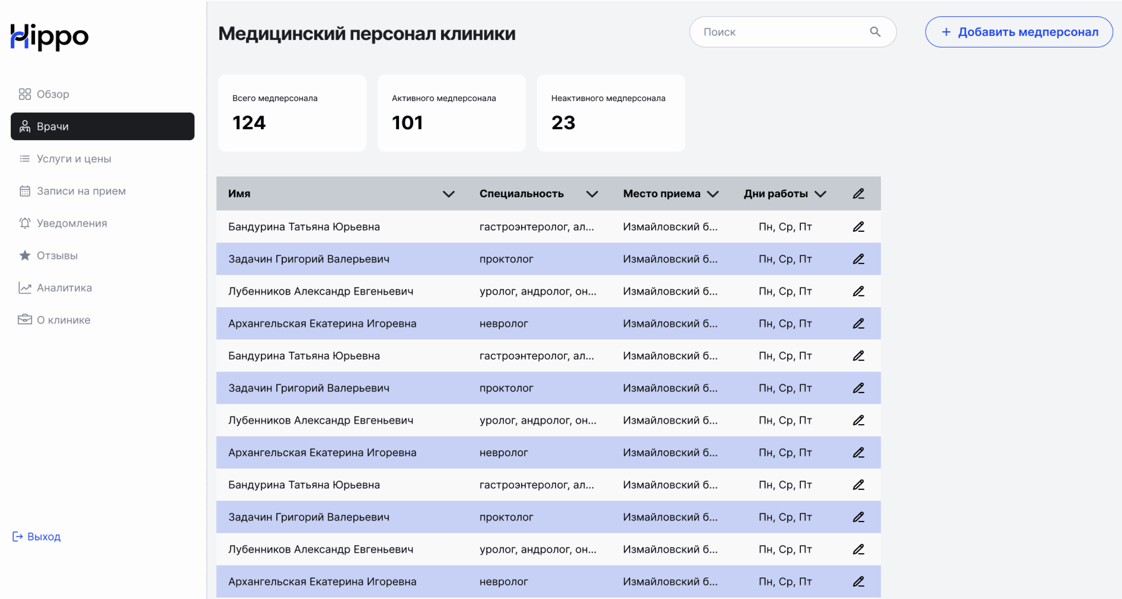 Включили роль администратора, который заносит врачей и их тайм-слоты в систему. Появился дэшборд администратора.